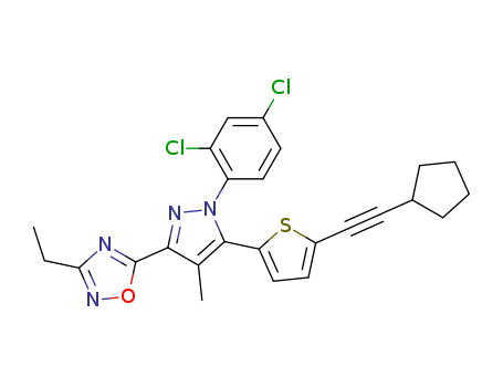 - Name: 5-(5-(5-(cyclopentylethynyl)thiophen-2-yl)-1-(2,4-dichlorophenyl)-4-methyl-1H-pyrazol-3-yl)-3-ethyl-1,2,4-oxadiazole