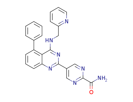 - Synonyms:5-(5-phenyl-4-(pyridin-2-ylmethylamino)quinazolin-2-yl)pyrimidine-2-carboxamide