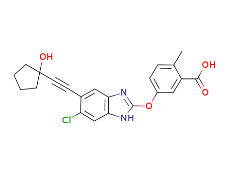 - Name: 5-[6-chloro-5-(1-hydroxy-cyclopentylethynyl)-1H-benzoimidazol-2-yloxy]-2-methyl-benzoic acid