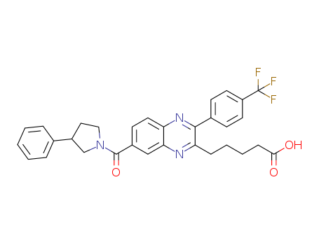 - Synonyms:5-(7-(3-phenylpyrrolidine-1-carbonyl)-3-(4-(trifluoromethyl)phenyl)-quinoxalin-2-yl)pentanoic acid