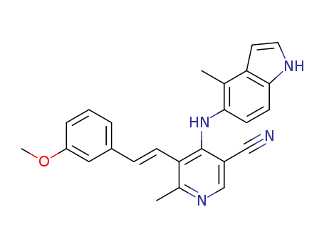 5-[(E)-2-(3-methoxyphenyl)vinyl]-6-methyl-4-[(4-methyl-1H-indol-5-yl)amino]nicotinonitrile(1160918-36-4)