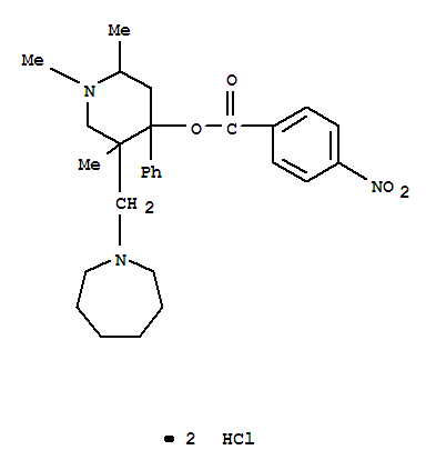 - Synonyms:4-Piperidinol,5-[(hexahydro-1H-azepin-1-yl)methyl]-1,2,5-trimethyl-4-phenyl-, 4-nitrobenzoate(ester), dihydrochloride (9CI); 4-Piperidinol,5-[(hexahydro-1H-azepin-1-yl)methyl]-1,2,5-trimethyl-4-phenyl-, p-nitrobenzoate(ester), dihydrochloride (8CI)
