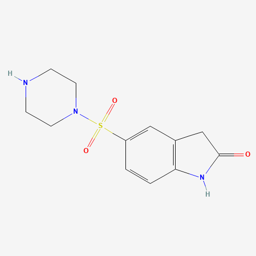 - Synonyms:848369-76-6;5-(piperazine-1-sulfonyl)-2,3-dihydro-1H-indol-2-one;5-(piperazin-1-ylsulfonyl)indolin-2-one;5-(piperazin-1-ylsulfonyl)-1,3-dihydro-2H-indol-2-one;MLS002251312;SCHEMBL2721237;CHEMBL1890522;DTXSID101218041;AKOS009016373;SB74983;NCGC00188704-01;SMR001313724;CS-0349495;EN300-14003;Z94602413;1,3-Dihydro-5-(1-piperazinylsulfonyl)-2H-indol-2-one