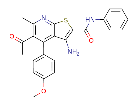 - Synonyms:5-acetyl-3-amino-4-(4-methoxy-phenyl)-6-methyl-thieno[2,3-b]pyridine-2-carboxylic acid phenylamide