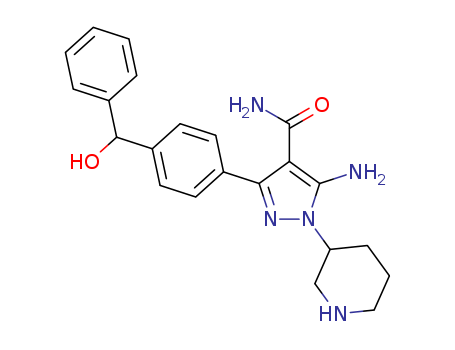 - Name: 5-amino-3-(4-(hydroxy(phenyl)methyl)phenyl)-1-(piperidin-3-yl)-1H-pyrazole-4-carboxamide