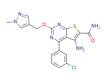 - Name: 5-amino-4-(3-chloro-phenyl)-2-(1-methyl-1H-pyrazol-4-ylmethoxy)-thieno[2,3-d]pyrimidine-6-carboxylic acid amide