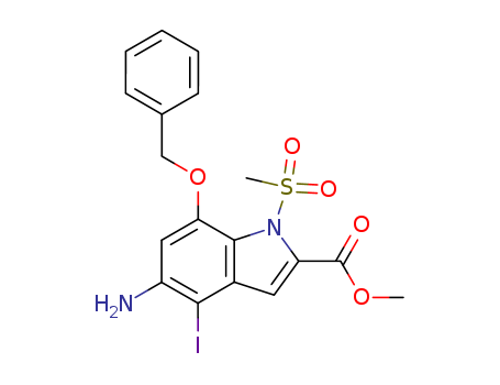 - Synonyms:5-amino-7-benzyloxy-4-iodo-1-methanesulfonyl-1H-indole-2-carboxylic acid methyl ester