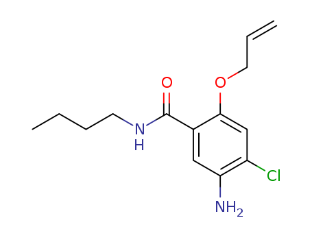 - Synonyms:Benzamide,2-(allyloxy)-5-amino-N-butyl-4-chloro- (8CI); Benzamide,5-amino-N-butyl-4-chloro-2-(2-propenyloxy)- (9CI)