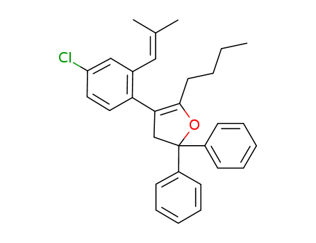 - Synonyms:5-butyl-4-[4-chloro-2-(2-methylprop-1-enyl)phenyl]-2,2-diphenyl-2,3-dihydrofuran