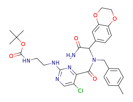 5-chloro-2-(2-t-butoxycarbonylaminoethyl)amino-N-[2-amino-1-{1,4-benzodioxan-6-yl}-2-oxoethyl]-N-(4-methylbenzyl)pyrimidine-4-carboxamide(1372763-26-2)