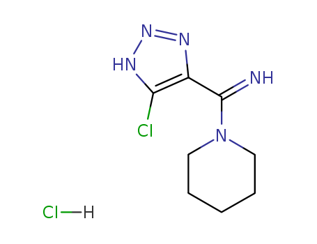- Synonyms:Piperidine,1-[(5-chloro-1H-1,2,3-triazol-4-yl)iminomethyl]-, monohydrochloride (9CI);1H-1,2,3-Triazole, piperidine deriv.