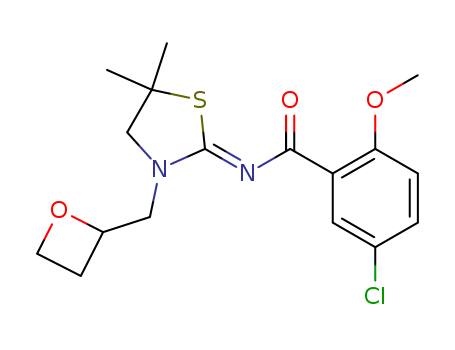 - Synonyms:5-chloro-N-[(2Z)-5,5-dimethyl-3-(oxetan-2-ylmethyl)-1,3-thiazolidin-2-ylidene]-2-methoxybenzamide