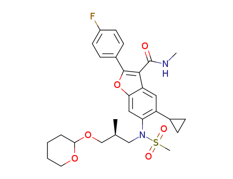 - Synonyms:5-cyclopropyl-2-(4-fluorophenyl)-N-methyl-6-{(methylsulfonyl)[(2S)-2-methyl-3-(tetrahydro-2H-pyran-2-yloxy)propyl]amino}-1-benzofuran-3-carboxamide