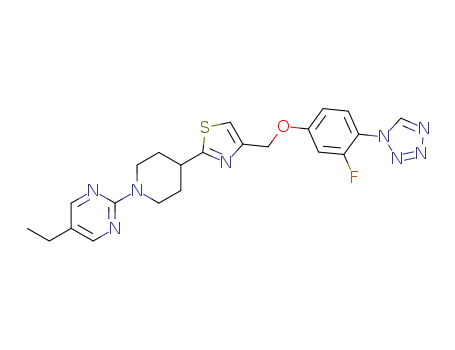 5-ethyl-2-{4-[4-(3-fluoro-4-tetrazol-1-ylphenoxymethyl)thiazol-2-yl]piperidin-1-yl}pyrimidine(1037795-56-4)