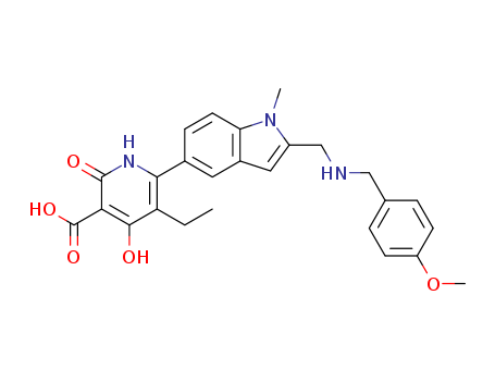- Name: 5-ethyl-4-hydroxy-6-(2-((4-methoxybenzylamino)methyl)-1-methyl-1H-indol-5-yl)-2-oxo-1,2-dihydropyridine-3-carboxylic acid