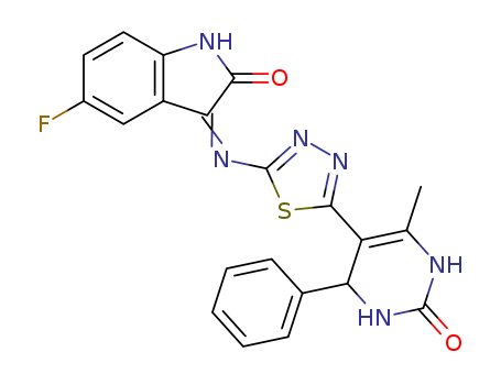 - Synonyms:5-fluoro-3-{[5-(6-methyl-2-oxo-4-phenyl-1,2,3,4-tetrahydropyrimidin-5-yl)-1,3,4-thiadiazol-2-yl]imino}-1,3-dihydro-2H-indol-2-one