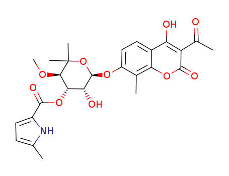 - Name: 5-methyl-1H-pyrrole-2-carboxylic acid-3'-ester of 3-acetyl-7-[(6-deoxy-5-C-methyl-4-O-methyl-alpha-L-lyxo-hexopyranosyl)oxy]-4-hydroxy-8-methyl-2H-1-benzopyran-2-one