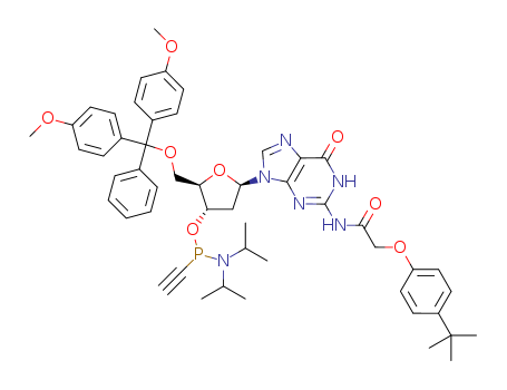 - Name: 5’-O-dimethoxytrityl-N2-tertbutylphenoxyacetyl-2’-deoxyriboguanosine 3’-O-ethynylphosphinoamidite