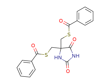 - Synonyms:5,5-bis(benzoylsulfanylmethyl)imidazolidine-2,4-dione;5,5-Bis((benzoylthio)methyl)-2,4-imidazolidinedione;5,5-Bis[(benzoylthio)methyl]-2,4-imidazolidinedione;5,5diPhCOSMe2 hydantoin