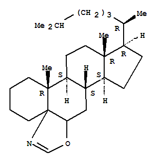- Synonyms:Cyclopenta[1,2]phenanthro[8a,9-d]oxazole,5'H-cholestano[5,6-d]oxazole deriv.; Cyclopenta[1,2]phenanthro[8a,9-d]oxazole,11-(1,5-dimethylhexyl)-1,2,3,4,7a,8,8a,8b,9,10,11,11a,12,13,13a,13b-hexadecahydro-11a,13b-dimethyl-,[8aS-[8aa,8bb,11a(S*),11aa,13ab,13ba]]-; [8aS-[8aa,8bb,11a(S*),11aa,13ab,13ba]]-11-(1,5-Dimethylhexyl)-1,2,3,4,7a,8,8a,8b,9,10,11,11a,12,13,13a,13b-hexadecahydro-11a,13b-dimethylcyclopenta[1,2]phenanthro[8a,9-d]oxazole
