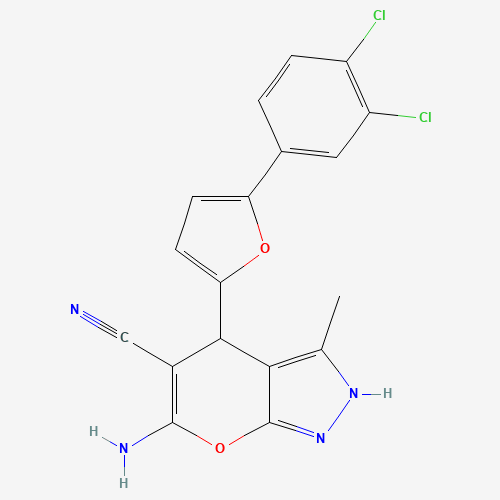 - Name: 6-Amino-4-[5-(3,4-dichlorophenyl)furan-2-yl]-3-methyl-1,4-dihydropyrano[2,3-c]pyrazole-5-carbonitrile