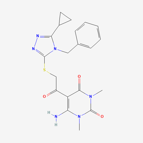 - Name: 6-Amino-5-[2-[(4-benzyl-5-cyclopropyl-1,2,4-triazol-3-yl)sulfanyl]acetyl]-1,3-dimethylpyrimidine-2,4-dione