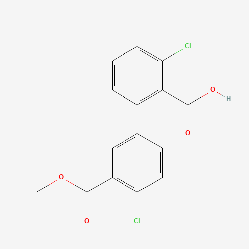 - Synonyms:1261940-67-3;6-CHLORO-2-(4-CHLORO-3-METHOXYCARBONYLPHENYL)BENZOIC ACID;DTXSID10692051;MFCD18322699;3,4'-Dichloro-3'-(methoxycarbonyl)[1,1'-biphenyl]-2-carboxylic acid