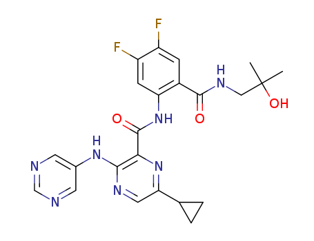 6-Cyclopropyl-3-(pyrimidin-5-ylamino)-pyrazine-2-carboxylic acid [4,5-difluoro-2-(2-hydroxy-2-methyl-propylcarbamoyl)-phenyl]-amide(1352196-98-5)