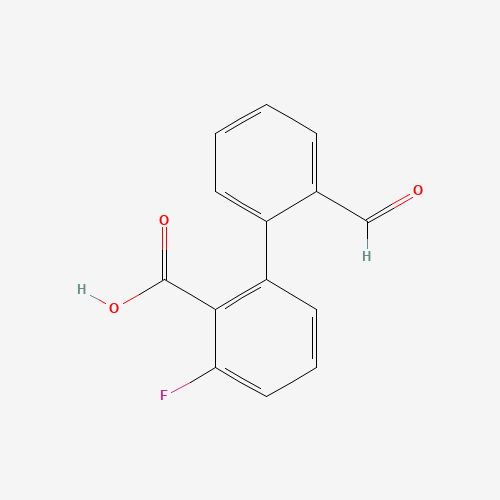 - Synonyms:6-FLUORO-2-(2-FORMYLPHENYL)BENZOIC ACID;1261983-47-4;SCHEMBL2553163;DTXSID60688848;MFCD18319185;3-Fluoro-2'-formyl[1,1'-biphenyl]-2-carboxylic acid