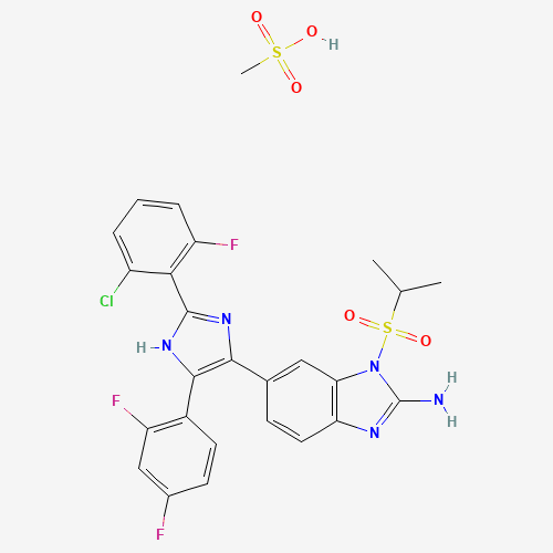 - Synonyms:890653-96-0;DTXSID90723190;Methanesulfonic acid--6-[2-(2-chloro-6-fluorophenyl)-5-(2,4-difluorophenyl)-1H-imidazol-4-yl]-1-(propane-2-sulfonyl)-1H-benzimidazol-2-amine (1/1)
