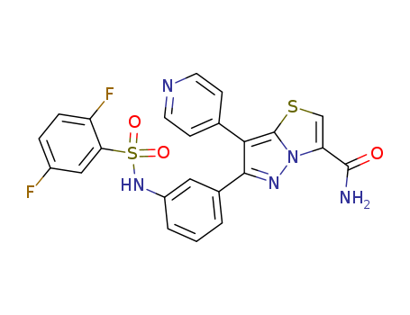- Synonyms:6-[3-(2,5-difluoro-benzenesulfonylamino)-phenyl]-7-pyridin-4-yl-pyrazolo[5,1-b]thiazole-3-carboxylic acid amide