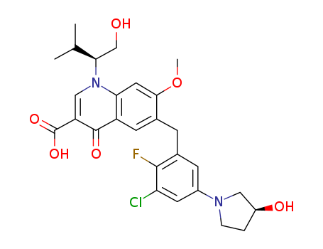 6-[3-chloro-2-fluoro-5-((S)-3-hydroxypyrrolidin-1-yl)benzyl]-1-((S)-1-hydroxymethyl-2-methylpropyl)-7-methoxy-4-oxo-1,4-dihydroquinoline-3-carboxylic acid(1000161-61-4)