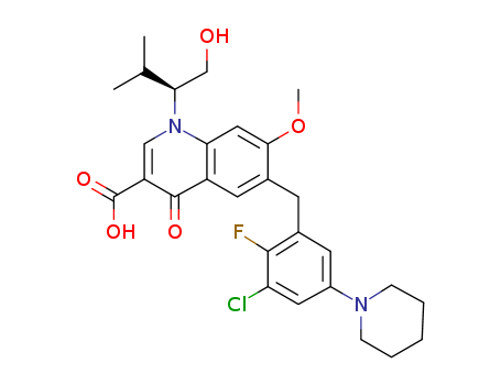 6-[3-chloro-2-fluoro-5-(piperidin-1-yl)benzyl]-1-((S)-1-hydroxymethyl-2-methylpropyl)-7-methoxy-4-oxo-1,4-dihydroquinoline-3-carboxylic acid(1000161-58-9)
