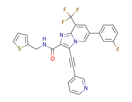 6-(3-fluoro-phenyl)-3-pyridin-3-ylethynyl-8-trifluoromethyl-imidazo[1,2-a]pyridine-2-carboxylic acid (thiophen-2-ylmethyl)-amide(1121053-01-7)