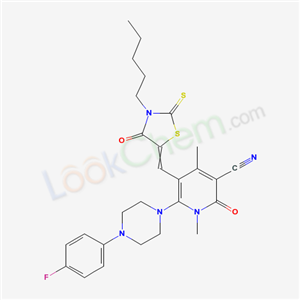 6-[4-(4-fluorophenyl)piperazin-1-yl]-1,4-dimethyl-2-oxo-5-[(4-oxo-3-pentyl-2-thioxo-1,3-thiazolidin-5-ylidene)methyl]-1,2-dihydropyridine-3-carbonitrile(7063-44-7)