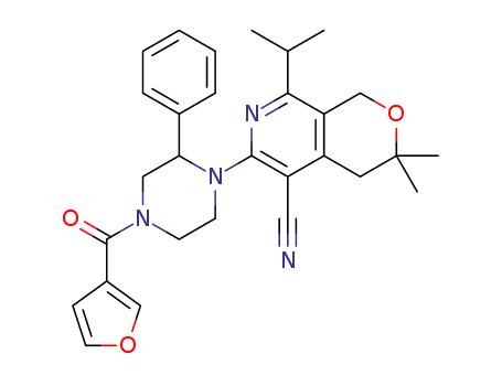 6-(4-(furan-3-carbonyl)-2-phenylpiperazin-1-yl)-8-isopropyl-3,3-dimethyl-3,4-dihydro-1H-pyrano[3,4-c]pyridine-5-carbonitrile(1416266-93-7)