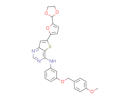 6-(5-(1,3-dioxolan-2-yl)furan-2-yl)-N-(3-(4-methoxybenzyloxy)phenyl)thieno[3,2-d]pyrimidin-4-amine(1228102-82-6)