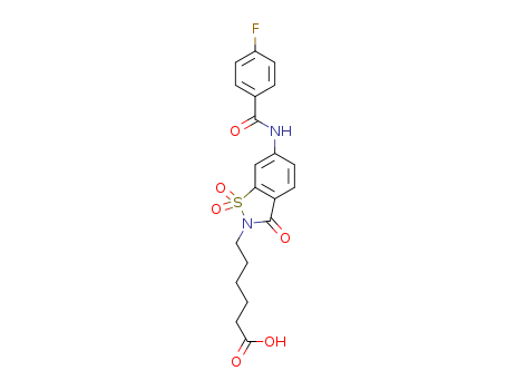 - Synonyms:6-(6-(4-fluorobenzamido)-1,1-dioxido-3-oxobenzo[d]isothiazol-2(3H)-yl)hexanoic acid