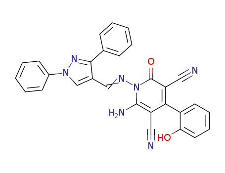 6-amino-1-((1,3-diphenyl-1H-pyrazole-4-yl)methyleneamino)-4-(2-hydroxyphenyl)-2-oxo-1,2-dihydropyridine-3,5-dicarbonitrile(1431621-16-7)