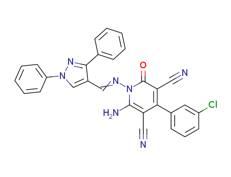 - Name: 6-amino-4-(3-chlorophenyl)-1-((1,3-diphenyl-1H-pyrazole-4-yl)methyleneamino)-2-oxo-1,2-dihydropyridine-3,5-dicarbonitrile