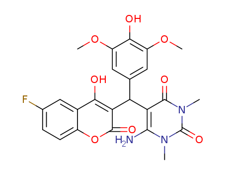 - Synonyms:6-amino-5-((6-fluoro-4-hydroxy-2-oxo-2H-chromen-3-yl)(4-hydroxy-3,5-dimethoxyphenyl)methyl)-1,3-dimethylpyrimidine-2,4(1H,3H)-dione