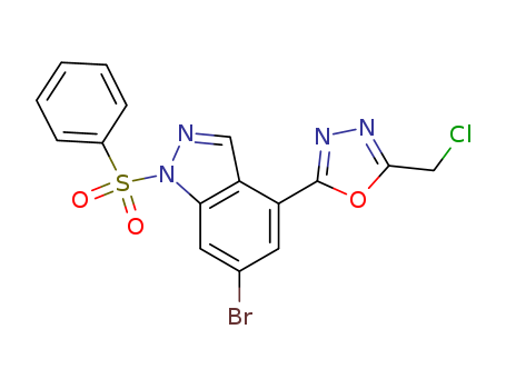 - Synonyms:6-bromo-4-[5-(chloromethyl)-1,3,4-oxadiazol-2-yl]-1-(phenylsulfonyl)-1H-indazole