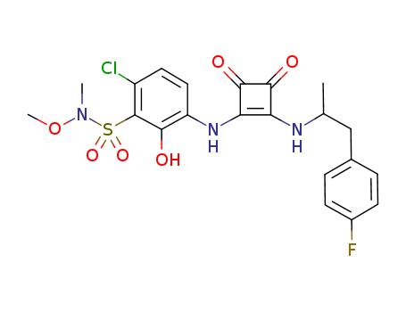 - Name: 6-chloro-3-(2-(1-(4-fluorophenyl)propan-2-ylamino)-3,4-dioxocyclobut-1-enylamino)-2-hydroxy-N-methoxy-N-methylbenzenesulfonamide