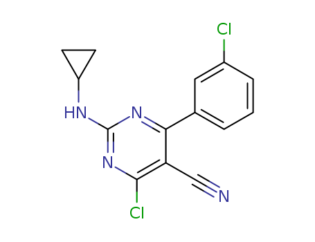 - Synonyms:6-chloro-5-cyano-4-(3-chlorophenyl)-2-cyclopropylaminopyrimidine