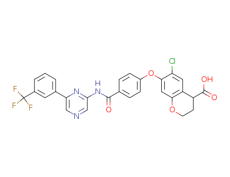 - Name: 6-chloro-7-(4-(6-(3-(trifluoromethyl)phenyl)pyrazin-2-ylcarbamoyl)phenoxy)chroman-4-carboxylic acid