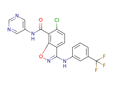 6-chloro-N-(pyrimidin-5-yl)-3-(3-(trifluoromethyl)phenylamino)benzo[d]isoxazole-7-carboxamide(1002106-17-3)