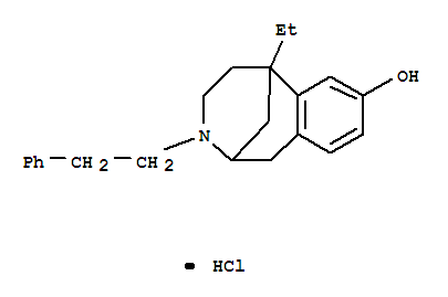 - Synonyms:2,6-Methano-3-benzazocin-8-ol,6-ethyl-1,2,3,4,5,6-hexahydro-3-(2-phenylethyl)-, hydrochloride (9CI);2,6-Methano-3-benzazocin-8-ol, 6-ethyl-1,2,3,4,5,6-hexahydro-3-phenethyl-,hydrochloride (7CI)