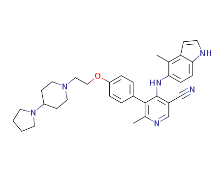 6-methyl-4-[(4-methyl-1H-indol-5-yl)amino]-5-{4-[2-(4-pyrrolidin-1-ylpiperidin-1-yl)ethoxy]phenyl}nicotinonitrile(1160849-13-7)