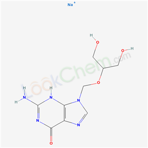 - Name: 6H-purin-6-one, 2-amino-3,9-dihydro-9-[[2-hydroxy-1-(hydroxymethyl)ethoxy]methyl]-, sodium salt (1:1)