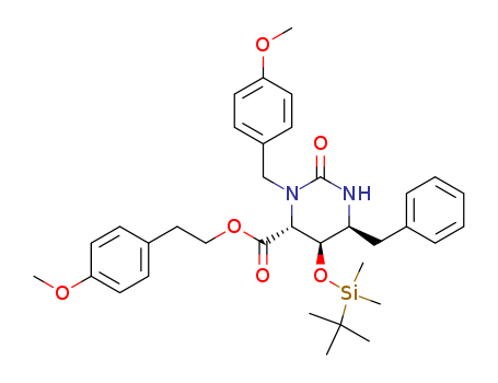 6(S)-benzyl-5(R)-t-butyl-dimethylsilyloxy-3-(4-methoxybenzyl)-2-oxo-hexahydropyrimidine-4(R)-carboxylic acid 2-(4-methoxyphenyl)ethyl ester(256419-22-4)